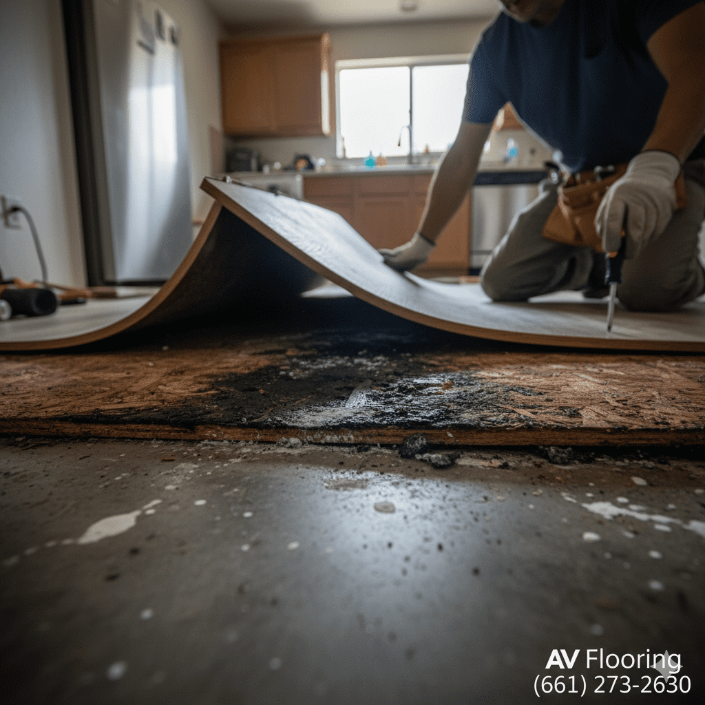If your floors are starting to cup, buckle, or lift—especially near the kitchen, bathroom, or along high-traffic seams—you might be looking at more than just a surface repair. You might be facing the very situation we recently encountered in another Palmdale home: hidden subfloor rot.