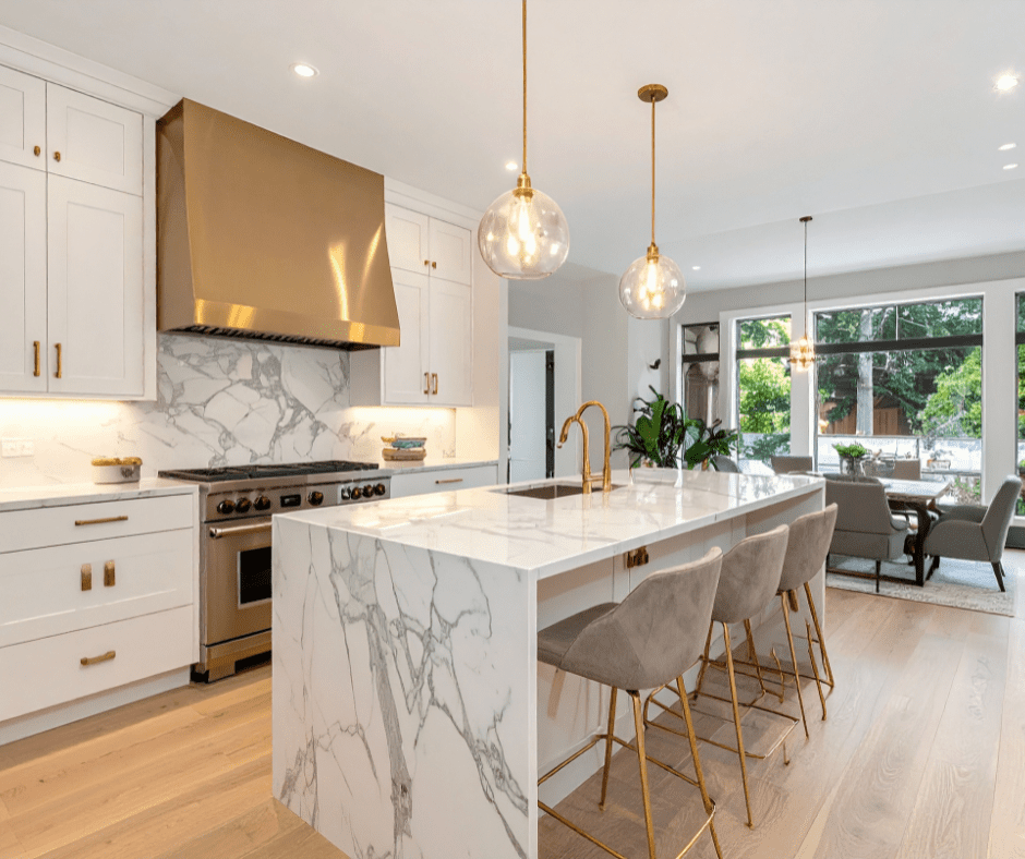 Granite, quartzite, and marble with dramatic veining are making kitchens stand out. Whether it’s a bold black with gold veins or a soft white with striking grays, natural stone gives your kitchen timeless luxury.